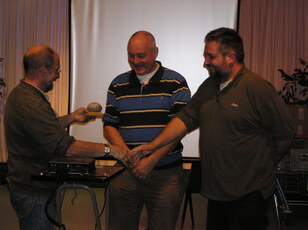 Nu eens een andere avond ivm het bokbierfestival in Amsterdam En dus de eerste vrijdag van november misschien de reden van een wat lage opkomst dan anders ,ondanks de presentatie van POLDERBOK op tap waren er volgens mij leden die dit stiekem al een week eerder hadden geproefd en dan is de nieuwigheid eraf maar dit terzijde . Na de opening van de avond mocht ik beginnen met de uitreiking van de zo fel begeerde MAANDBIERWISSELKEI of hij zo fel begeerd is daar begin ik aan te twijfelen misschien moet ik hem blond maken en er een andere gevel voor plaatsen zodat er meer maandbier op tap komt dat was dit jaar vier keer waarvan er een de mist in ging en zoals ik vermelde bij honderd leden ben je dan eens in de dertig jaar aan bot Maar de aanmeldingen stromen nu binnen voor november is het maandbier van andre v/d zee