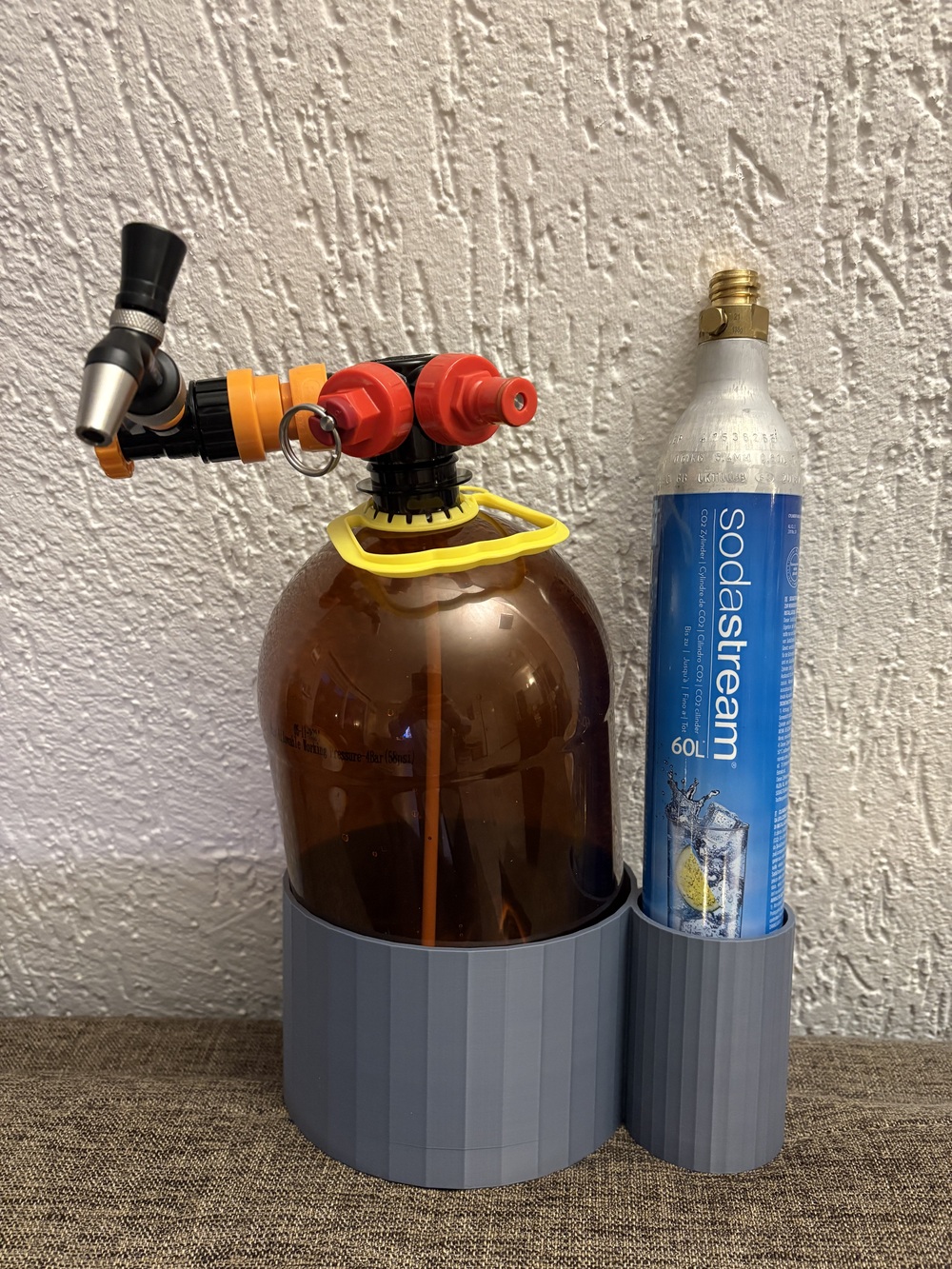 Omdat ducttape geen permanente oplossing is… Een 3D-geprinte houder voor mijn Oxebar-vat en SodaStream-patroon.