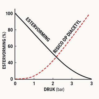 Iedere brouwer kent het effect van temperatuur op de vergisting: koel brouwen geeft een schoner bier, warmer brouwen levert meer fruitige esters en soms ongewenste hogere alcoholen. Maar er bestaat nóg een belangrijke parameter, eentje die vaak over het hoofd wordt gezien: druk. In de tweede helft van de twintigste eeuw werden brouwerijen steeds groter. Vergistingstanks groeiden uit tot reuzen van 10 tot 20 meter hoog. Zo’n tank oefent een aanzienlijke hydrostatische druk uit: ongeveer 1 bar per 10 meter vloeistofhoogte. Bij een tank van 20 meter praat je dus al gauw over ruim 2 bar, onder in de tank. Brouwers merkten dat hun pilsners daardoor minder esters bevatten en dat de vergisting trager werd. Wat eerst als een probleem werd ervaren, bleek later ook een kans: door druk bewust in te zetten, kon men schonere bieren maken bij hogere temperaturen en kortere doorlooptijden. De rol van koolzuur in de gistcelBij elke vergisting komt CO₂ vrij als natuurlijk bijproduct van de omzetting van suikers naar ethanol. Normaal gesproken ontsnapt die koolzuur via een waterslot. Onder druk wordt een groot deel echter opgelost in het bier. Volgens Henry’s wet neemt de oplosbaarheid van een gas toe met de druk. Bij 2 bar is de concentratie opgelost CO₂ dus veel hoger dan in een open vat. Gistenzymen die betrokken zijn bij decarboxylering – bijvoorbeeld in de synthese van hogere alcoholen en esters – raken hierdoor geremd. De reactie waarbij α-ketozuren worden omgezet naar fuselalcoholen verloopt minder efficiënt, en hetzelfde geldt voor de omzetting van alcoholen en acyl-CoA’s naar esters. Het gevolg is dat de gist een ‘gedwongen neutralere’ smaak produceert. Esters en fusels: gewenst of niet?Esters als isoamylacetaat (banaan) en ethylacetaat (lijmachtig, fruitig) zijn sterk stijlafhankelijk. Een Weizen mag flink wat isoamylacetaat hebben, een Saison kan funky fruitigheid verdragen, maar een Pilsner moet juist strak en schoon smaken. Onder druk vergisten is dus een instrument om de stijltypische esterniveaus bewust te sturen. Bij fuselalcoholen (propanol, butanol, isoamylalcohol) ligt het genuanceerder. In lage concentraties dragen ze bij aan body en complexiteit, maar bij te hoge waarden geven ze branderigheid en solventtonen. Druk verlaagt hun vorming, wat meestal positief is voor doordrinkbaarheid. DiacetylDiacetyl (2,3-butaandion) ontstaat uit het aminozuur valine. De gist scheidt een voorloper (α-acetolactaat) uit, die buiten de cel spontaan oxideert tot diacetyl. Normaal neemt de gist dit later weer op en reduceert het tot neutrale verbindingen. Onder druk verloopt die heropname trager, waarschijnlijk omdat decarboxyleringsstappen in het metabolisme worden geremd en omdat sommige aminozuren slechter worden opgenomen. Daarom wordt in praktijk vaak een diacetylrust toegepast: het bier nog 1–2 dagen laten staan bij een hogere temperatuur zodat de gist dit proces kan afronden. Effect op gistgezondheidOnder druk neemt de snelheid van celdeling af. Bij 2,5 bar is celreplicatie vrijwel volledig geremd. Voor de thuisbrouwer betekent dit dat je altijd voldoende gist moet enten – liever wat teveel dan te weinig. Wil je de gist opnieuw gebruiken, dan is drukvergisting riskant: de vitaliteit en levensvatbaarheid zijn vaak lager. Professionele brouwerijen gebruiken in dat geval meestal vers opgekweekte gist in plaats van hergebruik. Temperatuur, druk en tijdDruk werkt niet los van temperatuur. Een vergisting op 20 °C en 2 bar kan qua smaak overeenkomen met een klassieke ondergisting op 10 °C zonder druk. Dat betekent dat je thuis – zonder koeling – toch een relatief schone lager kunt brouwen. Maar tijd blijft een factor: door de geremde celdeling verloopt de eindvergisting soms trager, ook al is de hoofdvergisting warm. Extra rijping en lagering zijn dus nog steeds aan te raden. De vuistregel van Weihenstephan, Onderzoek van Miedaner (1978, Technische Universität Weihenstephan) leverde een eenvoudige richtlijn op: Druk (in bar) ≈ Temperatuur (in °C) ÷ 10 Bijvoorbeeld