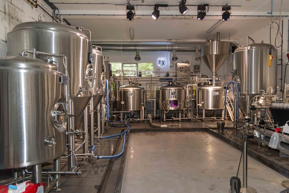Als iedereen binnen is gaan we naar een volgende ruimte. Daar staan drie ketels van 1000 liter inhoud opgesteld waarin bier kan worden gebrouwen. Haaks daarop staan twee ketels met distilleerkolommen opgesteld en drie gistingstanks van 2500 en 2000 liter. Aan de overzijde nog drie gistingstanks van 2000 liter en een heetwatertank. En dan staat er in een hoek nog een Canning-machine waar de bieren in blikjes worden afgevuld. Ook nog een vulinstallatie voor het afvullen van kegs. Vanuit de stokerij, die er eerder was dan de brouwerij worden TX-gin, TX-Wodka en diverse likeuren gemaakt. Verder wordt er nog TX Ocean Aged Gin gemaakt die exclusief gestookt wordt en vervolgens op eikenhouten Bordeauxvaten afgevuld. De vaten worden gerijpt op zeilboten naar de Caribbean en terug. Dus de rijping vindt op volle zee plaats. Degusteren van bieren en de BBQ bij TX