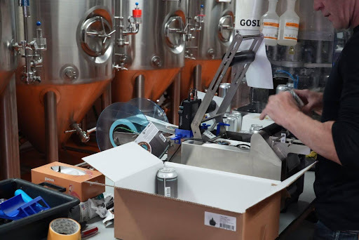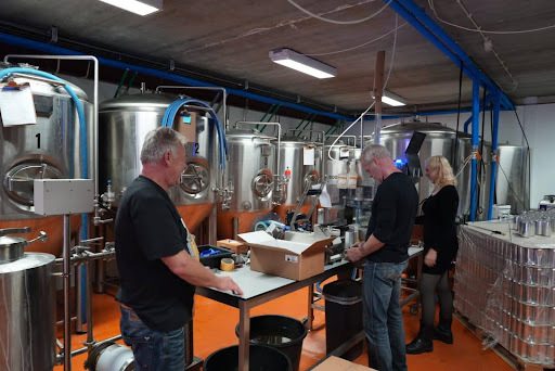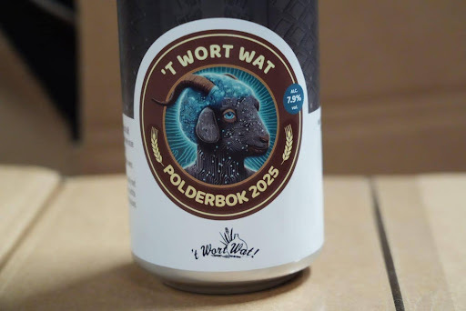Hier worden de etiketten aangebracht De conische gisttanks waren voorzien van een dubbele mantel waar met een glycolkoeler de vergistingstemperatuur nauwkeurig kon worden geregeld. Ze waren tevens voorzien van een verstelbare aftapkraan, d.w.z. de pijp kon d.m.v. een draaibeweging nauwkeurig boven het gistdepot worden afgesteld om een zo hoog mogelijk rendement te krijgen. Rond 14.45 uur waren we klaar en omdat we allebei een redelijk grote auto hebben, hebben we de twee fusten en 72 dozen in onze auto's gezet en direct bij Brouwmaatje afgeleverd. Daarna was het ook voor ons weekend!! Nu even afwachten tot 8 november, dan mogen we eindelijk allemaal kennis maken met de polderbok 2025. Ik zie er naar uit. Laten we hopen dat het een gezellig evenement wordt. En tot slot nog een kleine tip van Eva: de blikjes kunnen ook met nootjes of andere lekkernijen worden gevuld! Leuk idee voor een eindejaarsgeschenk?
