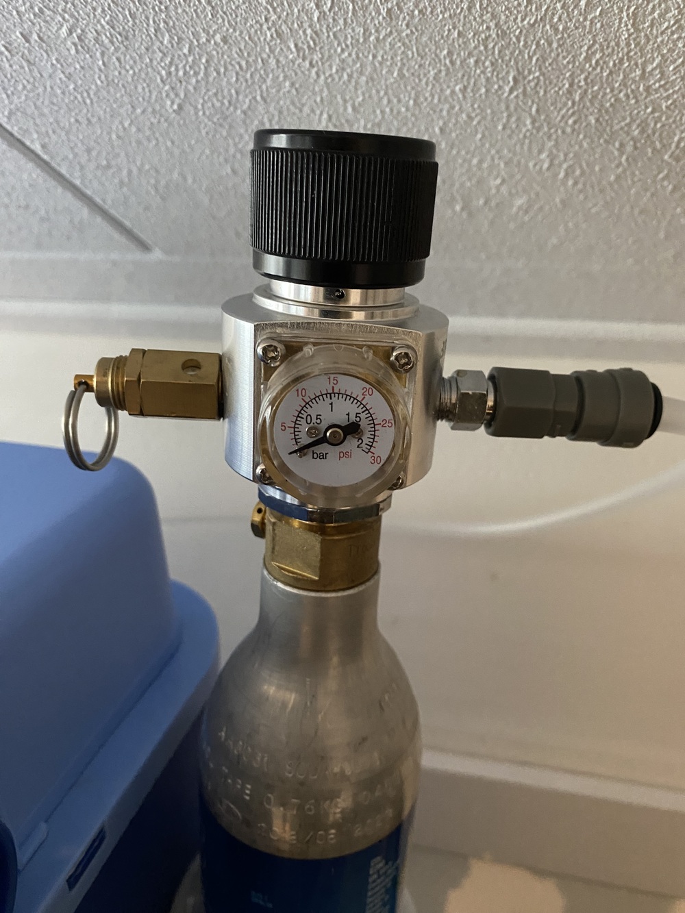 Met een beetje creativiteit vind je wel iets dat je kunt gebruiken om in de tussenwand te prutsen. De terugslagklep op de gasleiding is optioneel. Het voorkomt het teruglopen van bier in de drukregelaar, mocht je een keer per ongeluk verkeerd aansluiten of afkoppelen. Het gat voor de slang (8 mm) naar de sodastream heb ik aan de achterzijde gemaakt. Dat kan je naar eigen inzicht ook anders doen. Als houder voor de sodastreamfles heb ik een afgesneden petfles op de zijkant vastgezet met twee boutjes en moertjes. Twee gaten in de petfles zorgen ervoor dat ik de bij de boutjes kan om ze vast te draaien. Ongetwijfeld zijn er nog meer manieren te verzinnen om de sodastreamfles aan de koelbox te bevestigen. Of gewoon ernaast zetten. Ik heb er nog een klein lekbakje bij aangeschaft. Niet echt nodig, maar wel fijn met tappen. Je kunt er ook nog voor kiezen om uit te breiden met een tweede kraan, zodat je twee verschillende bieren kan serveren. De partytap was een succes op het eerste feestje. Met 8 liter bier tap je toch gauw zo’n 40 glazen. En als je meer Oxebars achter de hand hebt kun je nog meer tappen. Leuk om dan te zien dat bijna iedereen het leuk vindt om zelf zijn biertje te tappen. En dat doen ze dan zo enthousiast dat er ineens veel meer bier gedronken wordt… Daar doe je het toch maar voor, bier moet tenslotte gedronken worden! De foto's spreken voor zich. Mocht je toch nog vragen hebben, mail dan naar redactie@twortwat.nl. |