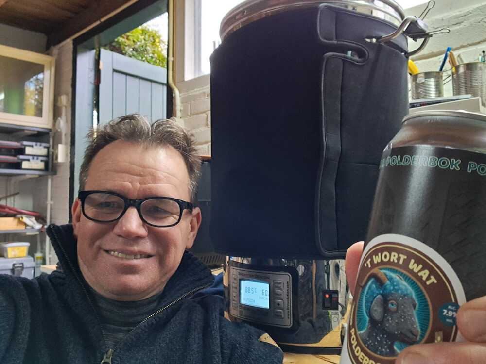 We zijn nog niet zover dat we volgens een biertype brouwen. In de toekomst wil ik nog wel aan een wedstrijd mee doen, puur om van te leren. Nu staat er een bier met een lager alcoholpercentage in de klimaatkast, geïnspireerd op een Karmeliet. Daarvoor heb ik een Imperial Stout gemaakt. Het idee komt uit het clubblad uit het interview met Kelvin. Ik heb met hem contact opgenomen en het recept gekregen. Ik kom regelmatig op de clubavonden. De laatste clubavond in december was erg geslaagd met heerlijke hapjes. Complimenten aan de organisatoren. De proeftafel vind ik ook een geslaagd item. Ik gebruik altijd korrelgist. Ik heb mij niet verder verdiept om andere gist te gebruiken. Ik ben wel precies in mijn brouwproces. Als er 4,5 kilo pilsmout in hoort, dan moet er ook 4,5 kilo pilsmout in. Ik weeg het ook allemaal van tevoren af. Zet ik het allemaal klaar tot en met de hop. Ik brouw niet zomaar een beetje uit de losse pols. De gisthoeveelheid laat ik ook berekenen door Brewfather, maar rond het wel af naar hele pakjes. Aan waterbehandeling of aanzuren doe ik niet. Mijn waterprofiel heb ik wel in Brewfather ingevoerd. Ik zie nu nog niet de meerwaarde, maar misschien komt dat nog wel. Het is ook maar een hobby. Ik hoef geen Champions League te winnen. Ik wil gewoon bier brouwen wat ik lekker vind. Natuurlijk komt er een beetje trots bij kijken als iemand anders het lekker vindt. Wat ik altijd wel doe is dat ik alles noteren in een logboek, zodat je dat de volgende keer weer kunt gebruiken. Ik heb ook echt een checklist gemaakt van alles wat en wanneer je moet doen. Ik denk dat ik wil leren om echt wel te brouwen naar de juiste stijl. Als je dan een Stout maakt, dat het als een Stout smaakt. Ik raadpleeg ook nog regelmatig het boek ‘Verander water in bier’. Het zou ook wel kunnen helpen om een keer met een ander te brouwen. Nu brouwen we alleen met zijn tweeën en dan leren we uiteindelijk niets meer van elkaar. Daarom vind ik het ook leuk om bij de club te zitten. Nieuwe mensen leren kennen waar ik dan ook nog van kan leren. Het is gewoon een erg leuke hobby!