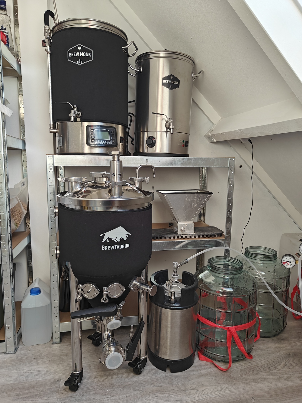 Onze tip voor beginnende brouwers is: neem je tijd. Zelfs na 10 jaar hebben we soms nog wel moeite om de tijd te nemen. Dat voorkomt zoveel onnodige fouten. Wees voorbereid, ook met de grondstoffen. We gingen weleens in de ochtend naar Brouwmaatje, die zit bij ons echt op de hoek, om vervolgens daarna meteen, zonder goed doordacht plan, te gaan brouwen. Tegenwoordig proberen we wel iets meer te plannen.We wisselen tegenwoordig het op keg zetten met geforceerd carboniseren af met het op de fles afvullen met hervergisting. We hebben wel het idee dat het bier dan anders smaakt. We hebben nog altijd veel plezier in het bierbrouwen en gaan daar zeker mee door! |