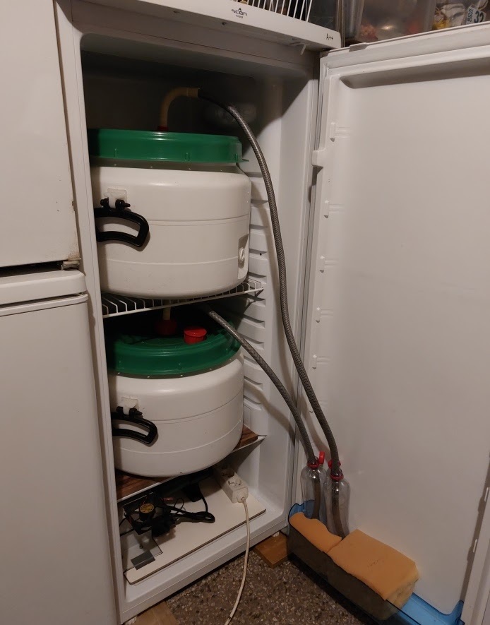 In vat B, echter, hebben we 30 gram dextrose toegevoegd (in 15 liter wort) om ruim boven de 8% uit te komen. Dan ga je richting tripel niveau. En vat B is vervolgens geënt met droge – ook vooraf gehydrateerde – M31 tripel gist van Mangrove Jack. Dat vat begon diezelfde avond al te gisten als een dolle en toen dacht ik: “Dat is wel erg snel! Wat is dit voor sterk spul?” En dat bleek later te kloppen, want na de gisting waren de uitslagen verrassend. Vanaf een best hoog start SG van 1064 kwam vat A met US-05 gist uit op een eind SG van 1016, dus prima om te bottelen. Maar vat B met M31 tripelgist eindigde op een SG van 1006! Ja echt, geen typefout… 1006. Met andere woorden: de mini-gistkabouters van M31 tripel gist helpen je bijna volledig van je suikers af en dus is de inleiding misschien wel grappig, maar eigenlijk zo gek nog niet. Dan wordt je nieuwsgierig, want hoe kan dat? En je wilt het ook weten, omdat dit duidt op ver doorgegist en dus erg droog bier. Oeps… en wat nu te doen voordat het in de flessen gaat? We moeten iets, anders is het niet te pruimen. Op zoek naar informatie op het internet kwam ik terecht op het forum van de bekende website ‘hobbybrouwen.nl’. Daar vervolgens de zoekterm ‘Mangrove Jack M31’ ingevuld en je komt in een forumdiscussie terecht waarbij iemand vragen stelt of M31 een ‘var diagnosticus’ gist is. Daar is ie dus! Dat wordt bij lezing verderop dan wel weer rechtgezet. Want het blijkt een ‘var diastaticus’ gist te zijn. Degene die een vraag had gesteld in een nieuwe forum discussie had de klok horen slaan, maar wist de klepel niet te hangen. Okay dan… Maar wat houdt dat dan in? Want daar ging het om. Een ‘var diastaticus’ blijkt een groep giststammen te zijn die in staat is om vrijwel alle suikers op te vreten, dus ook de meer complexe – en moeilijk vergistbare – lange suiker moleculen (koolhydraten). Een hoge vergistingsgraad dus, een soort Tasmaanse duivel die overal zijn tanden in zet en weg is je restant zoetje… Heel toevallig kwam ik informatie hierover tegen in module 5 van de MOOC / EdX cursus bij de Belgische K.U. Leuven. De cursus ‘The science of brewing beer’ is Engelstalig en de tekst hieronder is een letterlijke vertaling van de betreffende alinea. About M31 mangrove jack yeast (Eng.)[Vertaling]: Saccharomyces cerevisiae var. diastaticus is een natuurlijke variant van – bovengistende – Saccharomyces cerevisiae die wortdextrinen (koolhydraten met langere ketens) kan splitsen in fermenteerbare suikers. Deze specifieke gist is over het algemeen niet gewenst in een brouwerijomgeving. Deze giststam produceert namelijk het exo-enzym glucoamylase, ook wel amyloglucosidase genoemd. Dit enzym breekt wortdextrinen (die niet direct door reguliere brouwgisten kunnen worden gebruikt) af tot kortere, fermenteerbare suikermoleculen. Deze suikers kunnen vervolgens weer verder worden gefermenteerd, wat kan leiden tot een overmatige koolstofdioxidevorming in flessen, blikken of fusten (en mogelijk tot exploderende bierflessen door de opgebouwde druk!). Om deze reden is besmetting met Saccharomyces cerevisiae var. diastaticus over het algemeen ongewenst. Maar was het risico op ‘bommetjes’ maar het enige!Er kleven meer gevaren aan deze var diastaticus gisten. Deze gisten zijn zeer persistent, oftewel oersterke overlevers. Al blijven er ergens maar een paar cellen achter, kunnen die een volgende batch bier compleet verpesten. Want waar de gist die je daar dan hebt ingezet ophoudt in activiteit, vind deze ‘indringer’ dan nog wel voeding uit lange suikermoleculen, gaat zich vermeerderen en maakt er een gortdroog jongbier van. Dat is zeker, vooral met biertypen die een zoetje moeten houden, niet de bedoeling. En als je hiermee gewerkt hebt is het credo daarom: opntsmetten in veelvoud!! En dat moet zeer grondig en volledig, want hier komt nog een gevaar: Deze var diastaticus gisten kunnen in plastic materiaal trekken. En dus moet je alles wat je na vlamuit gebruikt stevig en ook langdurig ontsmetten. Plastic gistvaten, roerspaan, thermometer, watersloten, meetdobber en vooral hevels. En dus zijn we een hele middag bezig geweest om alles uit te sluiten waar een ‘besmetting’ zich kan verschuilen. Onze schoonmaak aanpak: