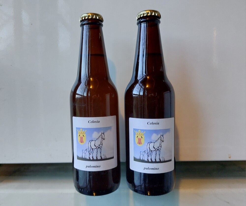 En na iedere behandeling driemaal naspoelen met kokend water! We hebben echt alles uit elkaar gehaald, bijvoorbeeld ook de rubber ringen van de gistvaten en vooral de slangetjes van de hevels los gehaald. In die kragen zit een zwakke plek waar besmetting zich kan verstoppen. Eigenlijk wordt je er bloedzenuwachtig van, de angst dat je ergens iets vergeet en over het hoofd ziet. Dus bij twijfelgevallen (gebruikt of niet?) zijn die ook rücksichtslos mee ontsmet. Niet overal even best voor je spullen, maar helaas – pindakaas… Als we van tevoren hadden geweten wat de gevolgen waren hadden we die M31 tripelgist nooit ingezet. In de cursus van K.U. Leuven wordt de boude bewering gedaan dat ‘diastaticus gisten’ een besmetting van een brouwerijomgeving zijn. Ja en nee, er zitten eigenlijk twee kanten aan. Misschien is dat bij professionele brouwerijen een wetmatigheid, maar voor ons als hobbybrouwers ligt dat wat anders. Want je kan bijvoorbeeld wel een droge tripel maken met M31. Alleen moet je beseffen wat je je op de hals haalt. Onze ‘tripel-trappel’ heeft aangetoond dat het kan, want het was een prima biertje. Wel wat troebel, maar in het vervolg verhaal wordt dat wel duidelijk. Tot zover wat achtergrond informatie…Maar! Wetende dat we op koers lagen naar een gortdroge batch tripel moesten we wat ondernemen. Een saisonnetje in tripel-uitvoering o.i.d.? Kom op zeg, dat leek ons vreselijk. Oei, hoe compenseer je dat dan? We hadden gelukkig een keer op de gok lactose gekocht, onder het motto “Die gaan we een keer proberen”. En dat kwam goed uit als redding in de nood. Maar! Nog nooit ingezet en hoeveel moet je dan doseren? Op internet vond ik allerlei informatie, die elkaar ook tegensprak. Tsja, wat nu? Nou, we gebruiken maar wat we hebben, lactose (melksuiker) is in de menselijke smaakbeleving ongeveer half zo zoet als kristalsuiker of druivensuiker, dus we zullen echt geen buil vallen. BottelenIn beide bierversies is 7 gram/liter kristalsuiker als bottelsuiker gegaan. De blonde dubbel hebben we ‘palomino’ genoemd, indachtig ons paardenthema op het etiket. En de tripel versie hebben we ‘tripel-trappel’ genoemd. * Klonk wel leuk en was een grappig idee omdat we vlak voor Sinterklaas het spul in de flessen hebben gedaan. Van US-05 weten we het gedrag qua drukopbouw in de fles wel, want al veel toegepast. Dus daarom hebben we de controle drukmeter op de M31 gezet en opnieuw ging die gist snel van start. Maar de druk stokte na twee weken bij drie bar, want toen de brouwsuiker blijkbaar op was vond de gist niks meer. Denk maar aan het eerdere eind SG van 1006. Geen ‘bommetjes’ dus, maar veel later bleken sommige flessen tripel bij open maken toch wel een beetje te knallen. Zou die gist mettertijd lactose dan ook nog aanvallen? Nee he, het zal toch niet waar zijn? Dat zou nog link kunnen worden!! Onze ervaringen